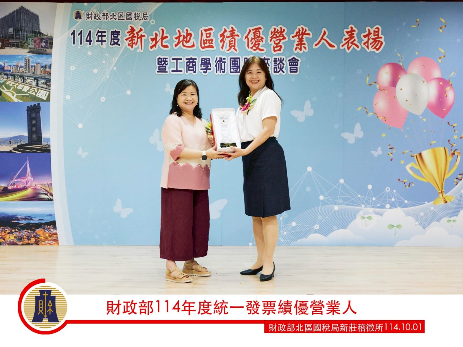 該局說明,為對得獎營業人誠實納稅與支持稅制稅政表達感謝與敬佩之意,肯定績優營業人獲獎的殊榮,除致贈精美紀念品外,並於表揚典禮播放營業人簡介,以彰顯獲獎殊榮,祝福營業人事業興盛,名揚國際。另外,該局轄內關貿網路股份有限公司及鉅盛資訊股份有限公司為財政部評選114年度優良電子發票加值服務中心,併同本次頒獎典禮公開表揚,以感謝加值服務中心戮力推廣雲端發票。同時為感謝社團法人台北市會計師公會、社團法人臺北市記帳士公會、社團法人台北市記帳及報稅代理人公會長期協助推廣營業人開立電子發票,及社團法人台北市地政士公會長期協助本局服務櫃檯解決民眾疑難問題,亦併同本次頒獎典禮公開表揚。