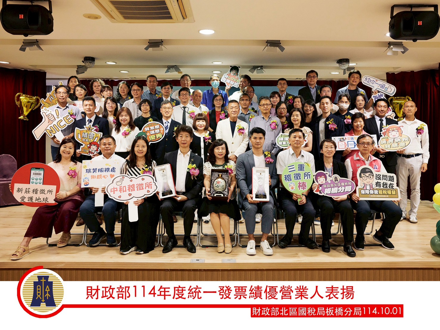 財政部臺北國稅局表示,為獎勵營業人誠實使用統一發票及電子發票,落實政府節能減碳政策及結合企業永續經營理念,該局114年度評選出轄內使用統一發票績優營業人45家及使用電子發票績優營業人24家,於9月18日舉辦績優營業人頒獎表揚典禮,由吳局長蓮英代表財政部頒發獎座及致贈紀念品。